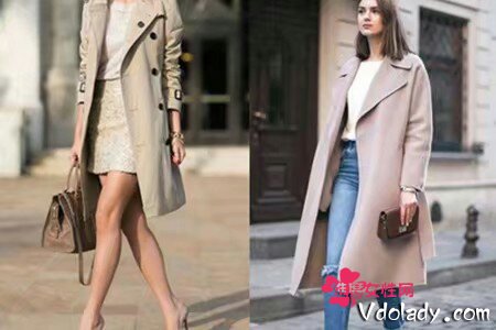 三、大衣 如果在秋冬季节,天气变得有点凉,这个时候面试可以选择百搭时尚的大衣。风衣的衣服可以选择一些比较柔和的颜色,像白色、米白或者藕粉色等等。图一是米色的中长款风衣,里面搭配套装裙子,看起来很简洁很干练的感觉。而图二同样是米色大衣,里面搭配白色针织衫,下身搭配蓝色牛仔裤,看起来也是很知性大方。