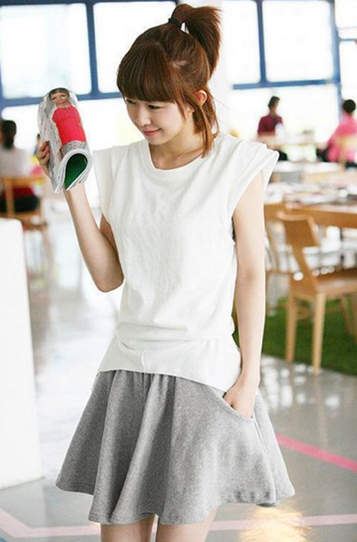 这样的穿着,裙裤的高腰到大腿的长度,还有它的束腰对于显瘦的效果是非常好的,搭配白色的上衣,这就是一个甜美少女的最佳搭配呀!还有腰间绑个蝴蝶结就是给淑女气质加分。这样的穿搭,不管你是搭配一个小白鞋还是细带凉鞋之类的也是一点违和感都没有呢!