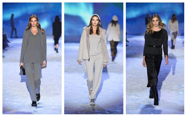 首先亮相的则是时尚与性能兼具的“Techno-Urban”系列。超高科技的纯羊毛外套选用羊绒衬里,可抵御最恶劣的严寒天气。该系列的主打产品则是羊绒渔夫罗纹毛衣,该产品呈现了完美的契合度,让满满活力与清爽之气扑面而来。色系的选择则是从蓝色和灰色系过渡到棕色和驼色系,最后以浆果红色、蓝绿色及墨蓝色系收尾。