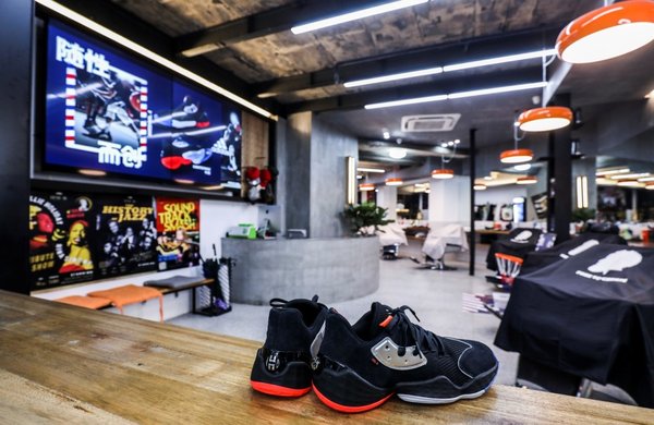 Barbershop内设有陈列用篮筐和哈登新鞋Harden Vol.4作为展示