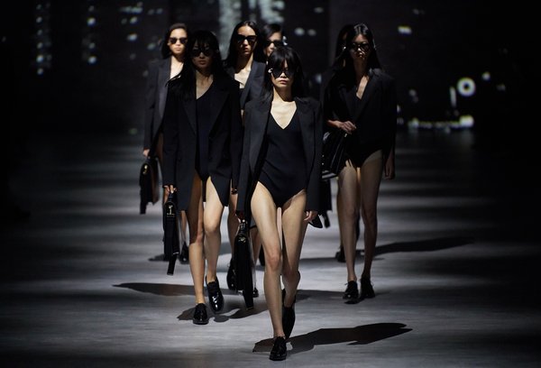 此次,LILY以经典黑白为主色调,运用工业风水泥质感的秀道,复古、摩登的都市影像营造简洁、时髦、高级的艺术氛围。与纽约时装周不同,“women in suits”形象成为本次大秀的亮点,LILY以西装这一经典的职场符号作为载体,视觉化讲述随着时代发展的中国职场女性风貌。溯源至80年代的宽肩廓形、极具中性风格的oversize,生动刻画了“中国新女性”独立、率性、真实和多面的形象。