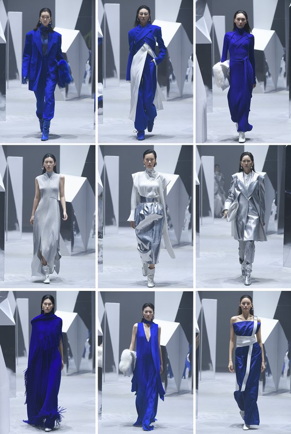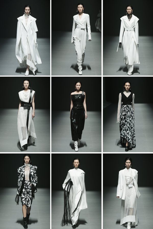 无论发布秀的呈现形式如何变化,核心价值依然离不开产品和设计。本次大秀在保持 NAERSILING 一贯的高品质和简约风格的基础上,以极光白、幻影黑、远空蓝为主色调,重点通过宽肩造型、不对称解构艺术等设计手法,体现犹如城市建筑般线条分明、硬朗与温柔平衡的造型,完美演绎都市 LADY 的多面形象。其中,不论是自由随性的摇曳流苏、摩登前卫的网孔面料、亦或是提取品牌花-马蹄莲作为的设计元素,都呈现出设计师的匠心独运,传递自由、简约、摩登的美学理念。