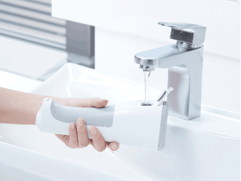 四. 觉得嘴里水满了,关掉开关,吐出水后,再重复以上动作,一般冲牙时长为一分钟,松下小白塔的水容量可以满足完整冲牙一次。在吃完正餐或刷完牙后随时冲洗,时刻保持你的口腔清洁,预防由牙菌斑导致的牙周病问题。