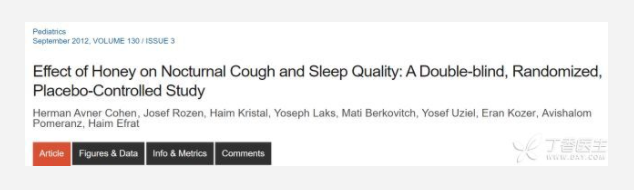 其实,早在2012年以色列蜂蜜对夜间咳嗽和感冒的对照研究结果就表明,蜂蜜可以帮助减轻儿童咳嗽的频率和程度。美国胸科医师学会(ACCP)研究过普通感冒相关咳嗽(CACC)的相关治疗方法和药物,写了一份报告,在报告中认为蜂蜜是治疗 CACC 的唯一推荐药物。