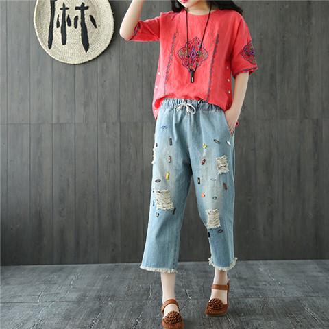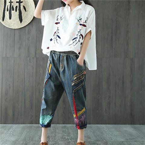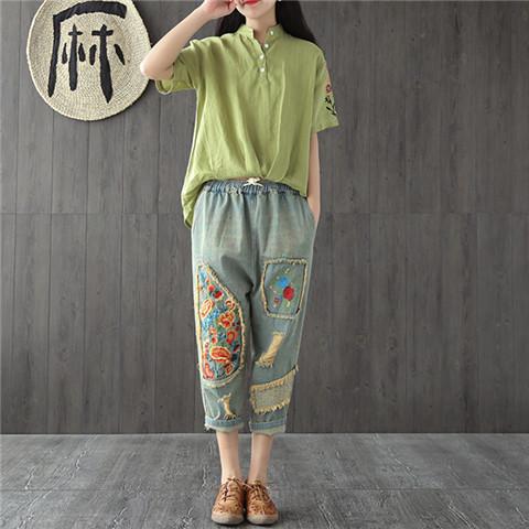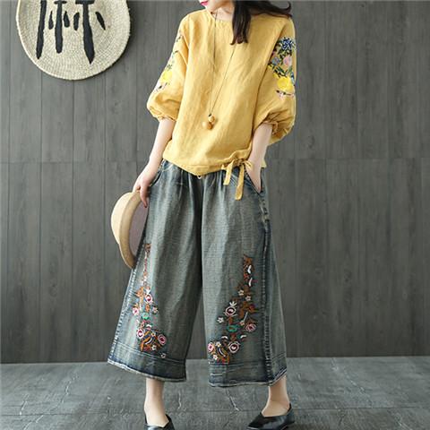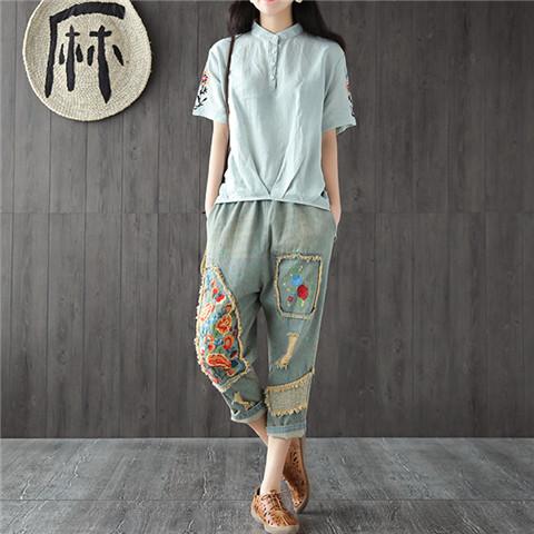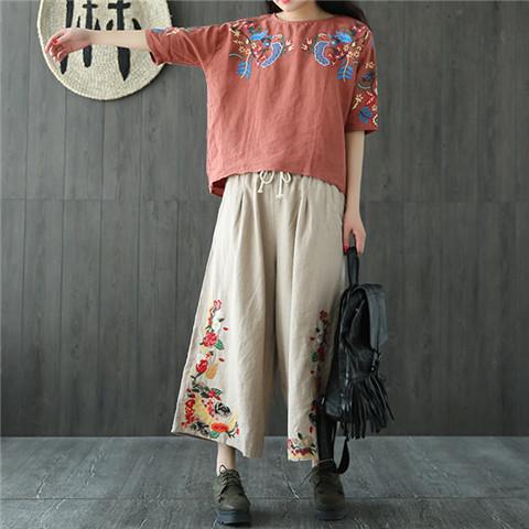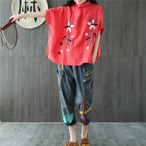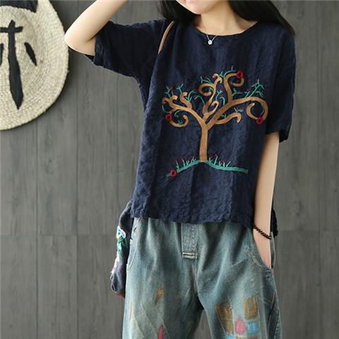 小耳出品原创设计复古刺绣绣花短袖,时尚翻领设计,宽松显瘦,复古精致的刺绣彰显质感, 同时亚麻面料地t恤还相当的吸汗。