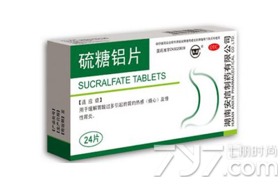 ②表面制剂:包括以下药物。硫糖铝(sucralfate):是硫酸化蔗糖的碱性铝盐,它在水中可释放出硫酸化蔗糖和氢氧化铝,分别具有抑制胃蛋白酶活性和中和胃酸的作用。它的分子在酸性环境中崩解成具有活性的带负电的颗粒,形成一种粘性糊状复合物。选择性地黏附到溃疡基底构成一层保护性屏障,此外它也有刺激HCO3-和黏液分泌的作用。