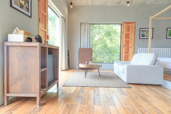 走得累了,便在被流水青山围绕的原舍·望山内休憩一会儿。这座由上海世博景观工程总顾问朱胜萱操刀设计的民宿,让你们能在返璞的房间里,倚在沙发上,面朝竹林,静听竹浪声声。从原舍出发去莫干山脚下的庾村,趁上午的太阳还不太烈,选一家有机农庄,体验放牛赶鸭的农家生活,还可以挤一桶牛奶做做牛奶糖;下午则可以窝进当地的手工作坊,用最古老的植物色素扎染布匹的手艺,真正做一回现代版的牛郎织女。