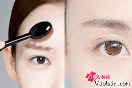 眉粉是女生们常用的画眉工具,相比坚硬的眉笔,用它画出的眉毛看起来会更加自然,当然上妆的难度也会更大。很多初用眉粉的女生都会发现,它不太容易上色,而且也不容易涂抹得很均匀。其实,要想让眉粉上色更容易也更均匀,只需做好下面这四个步骤就可以了。 第一步,给眉毛进行打底。 用粉底液点在眉毛处,并用刷子涂抹均匀,这样做的目的在于让粉底液掩盖住眉毛处的油脂,降低眉毛的光滑度。所以只要先给眉毛进行打底,大家就会发现使用眉粉来上色会变得容易多了。