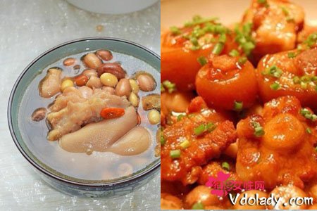 第一、美容抗衰老 这种功效相信很多人都意想不到吧,为什么猪蹄炖花生能有这种神奇的功效呢?因为猪蹄里面含有非常多的胶原蛋白,它能够被我们人体所吸收,然后通过对我们的皮肤状态进行改善,不仅能够加强我们皮肤的贮水能力,还能够让我们的皮肤变得更加具有弹性。 经常食用猪蹄炖花生,能够有效的延缓我们机体的衰老,对于爱美的女性朋友来说,猪蹄炖花生是必不可少的一类食物。