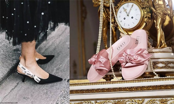 这一季大热的两只爆款鞋都使用了蝴蝶结元素:蕾哈娜第3季 Fenty X Puma 2017春夏系列配饰鞋品和Dior 2017春夏系列猫跟鞋。