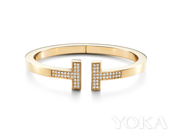 Tiffany & Co. 蒂芙尼T系列T Square18K黄金铺镶钻石手镯 图片来自Tiffany & Co.