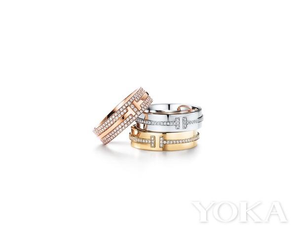 Tiffany & Co. 蒂芙尼T系列T Two18K玫瑰金、白金及黄金镶钻戒指 图片来自Tiffany & Co.