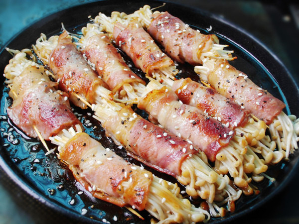 三五个亲朋好友相约在家里做烧烤小酌两杯,边吃边把酒吟欢那不是人生一大快事,想想是不是感觉很开心?小编在此就教大家怎么做这道烧烤经典菜品--培根金针菇卷!