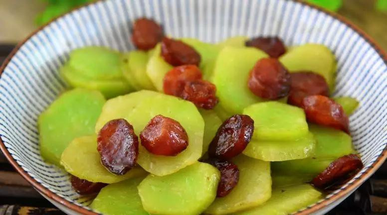 莴笋又称莴苣,内含莴苣素是味苦,有镇痛的作用。在南方常见用来和猪肉一起炒,这样配也不错,但你有没有试过跟香肠一起炒?味道可能是出乎你的意料。是不是等不了开始想学,没有问题小编立刻开始教你