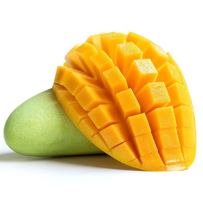 青芒成熟后的果皮也是绿色的,但此时的果肉已经变成黄色了,口感柔滑且浓甜芳香。