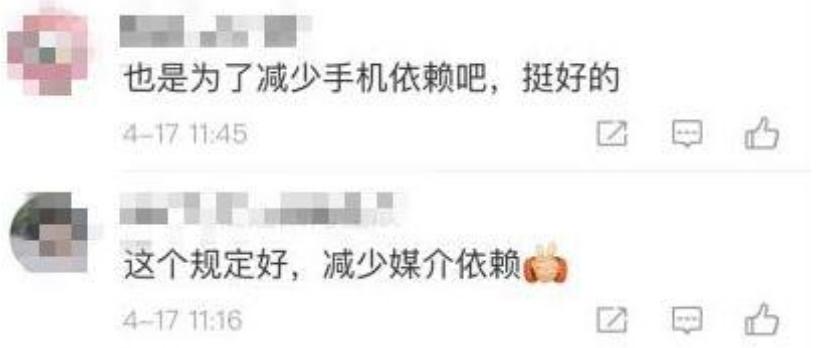 中国网友得知此事后,纷纷表示赞同,认为现在此举可以减少孩子对手机和社交媒体的过度依赖。