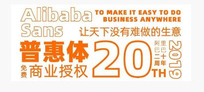 4月27日,在阿里巴巴UCAN 2019设计大会上,阿里巴巴集团对外推出了官方系统字体——“阿里巴巴普惠体”,并宣布该字体将免费授权给全球用户和公众使用,为商家、特别是中小商家减负。
