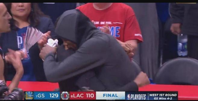 这场比赛结束之后杜兰特和贝弗利拥抱致意,在赛场上他们是对手,这一整个系列赛贝弗利都在不断的给杜兰特制造困难,不过当系列赛结束之后两人还是一笑泯恩仇,他们的还是朋友。当然这个系列赛他都成就他们两人,贝弗利的防守能力堪称顶级,杜兰特的两场比赛拿下95分,证明自己是联盟中最好的球员之一。