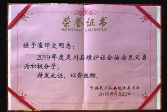 3月10日晚,桂林电子科技大学内,男学生梁某因感情纠葛,将同校的女生梁某某捅伤。女大学生崔译文见状上前阻止行凶,用身体护住女同学,不幸又身中8刀。4月28日,崔译文被学校属地的灵川县政法委授予“见义勇为积极分子”荣誉称号。