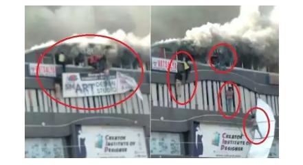 据《印度时报》报道,火灾发生时,超过35人被困在大楼里的舞蹈班和时装学院。电视上的画面显示,学生们从大楼上跳下。