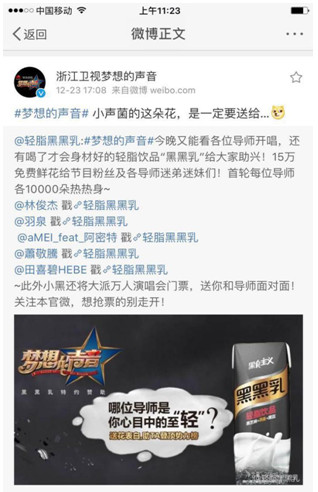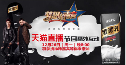 除此之外,一向致力为年轻人传达轻脂健康生活理念的黑黑乳还抓准时下火遍大江南北的直播形式,联手羽泉导师和助力团成员袁成杰在天猫直播来了一次《梦想的声音》番外互动。誓将娱乐进行到底的黑黑乳,这次直接把爱豆请到你面前进行互动,零距离接触明星导师的方式让粉丝大呼过瘾!