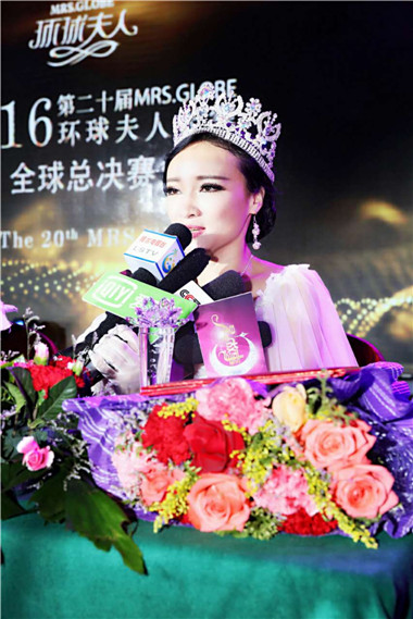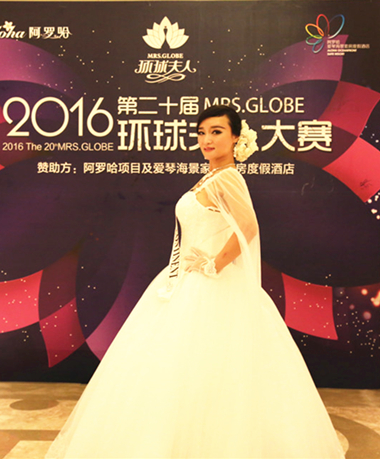 2016年12月11日晚,第20届MRS.GLOBE环球夫人大赛全球总决赛在万人期待中落下帷幕。一位来自中国的魅力夫人,以其优异的表现,最终包揽了三项最重要的奖项:环球夫人亲善大使奖(环球夫人特别大奖)、最具才华奖、金球奖。她就是本文的主人公——晓旭。