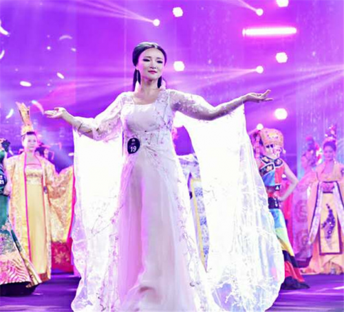 晓旭古典飘逸如脱凡尘的民族服装秀、美轮美奂叹为观止的古筝诗词弹唱、清新亮丽落落大方的旗袍展示、雍容华贵仪态万千的晚礼服装展示、机智幽默深刻感恩的口才表达,每一个环节都呈现了一位美丽、自信、智慧、爱心的东方女性形象。