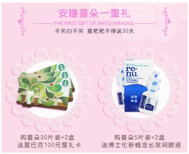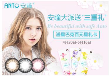 安瞳作为2016年度国际模特大赛指定隐形眼镜品牌,在国内知名度骤升,拥趸者百万。推出新品高端混血系列Mandol蔓朵形有络樱粉、研目棕、流萤灰三色选择,活动“一重礼”购两盒即送大礼,星巴克百元星礼卡送不停