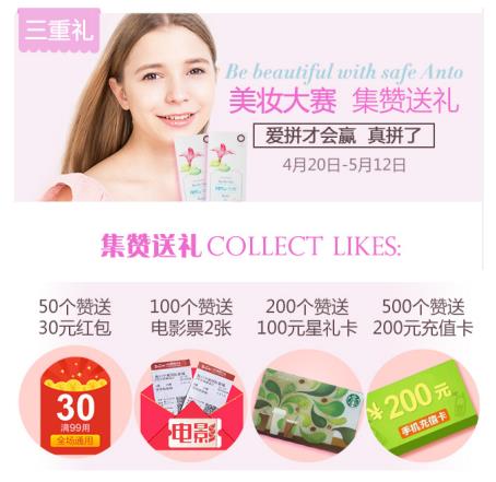 在微信朋友圈晒戴美瞳照,附安瞳正装盒子清晰图,及官网活动链接集赞送大礼:手机充值卡、星巴克百元星礼卡、热映电影券2张……众多好礼拿到手软!