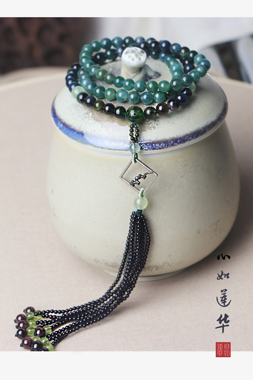 新品初见时灵动宜人,细品之下岁月光华,选用珠串既纵古意,又现灵光,历经岁久深蕴,修得正心。