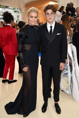 音乐制作人Tommy Mottola则以来自于Tommy Hilfiger高定系列的深蓝色双扣青果领礼服亮相,配白色双层袖口礼服衬衫。