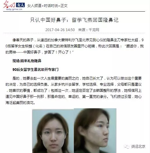 “Õæ¿ªÐÄÒ²£¬Õâ´Î»Ø¹úµ½±±¾©À´¼û´óÃû¶¦¶¦µÄÖйúºÃ±Ç×Ó¶ÅÌ«³¬£¬ÎÒÐÄÀïµÄÕûÐÎÔ¸ÍûÂ䵨ÁË£¬ÃÀÃÀµÄ±Ç×Óѽ”!Ô¶ÔÚÐÂ¼ÓÆÂÁôѧµÄÕã½Å®º¢¼Ñ¼ÑÔÚ¸¸Ä¸µÄÅãͬÏ£¬»Ø¹úºó£¬µÚÒ»¼þʾÍÊÇÀ´µ½±±¾©£¬Ô²ÁË×Ô¼ºµÄÕûÐÎÃÀÀöÖ®ÃΡ£