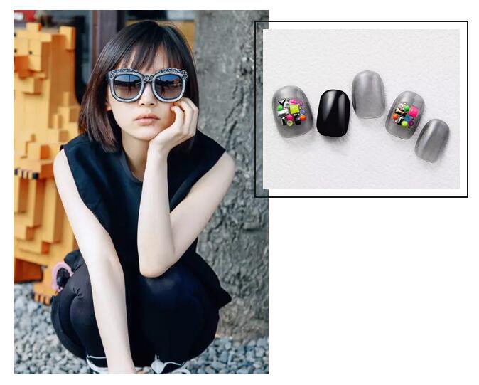 不同材质拼接在一起可以提高视觉上的质感。叠搭式的着装,配以黑色与柠檬黄的颜色,总能让人一眼记住。