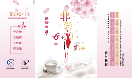 非尝6+1奶茶是青岛乾元天健商贸有限公司旗下的一款塑身奶茶产品。在产品上市之前,公司派发了不少奶茶体验装,记者发现体验装的提拉袋精致优雅,打开外包装,除了附带的一支设计精美的食用级别的调羹棒,铁盒里以7+7+1的形式装着15包奶茶,这样的布局与奶茶的主题遥相呼应。