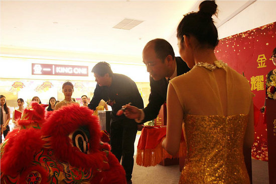 5月28日,黄金珠宝国民品牌金一在长沙芙蓉区国金街举办了隆重的开业庆典。湖南珠宝首饰行业协会会长陈新国先生、湖南黄金珠宝玉石检测站站长曾少乾、北京金一文化发展股份有限公司监事会主席兼总裁助理徐金芝、北京金一零售事业部副总经理敖苗、湖南省金一渠道总经理张跃财等嘉宾出席了本次活动,共同见证湖南金一百店联启这一盛事。