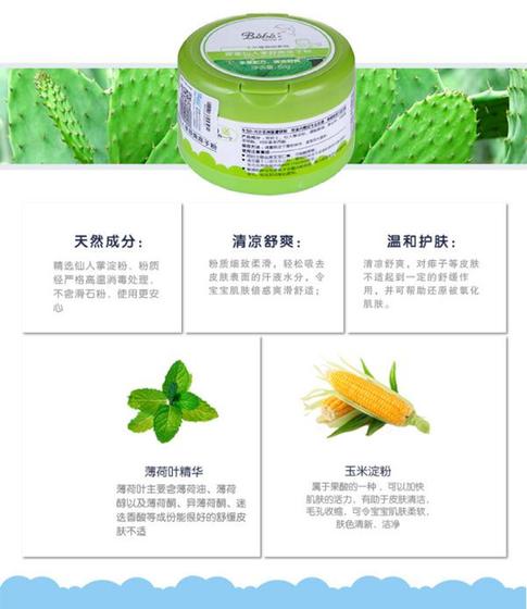 据介绍,法国婴姿坊婴童仙人掌舒爽痱子粉的主要成分包含玉米淀粉、薄荷叶精华以及仙人掌叶提取物等等,纯植物精华制成,不含滑石粉,pH值呈弱酸性,不破坏宝宝肌肤弱酸性保护膜,温和低刺激,能为宝宝祛除痱子并且舒缓肌肤,帮助宝宝健康、快乐地度过闷热夏季。想要为宝宝寻找一款纯植物精华的痱子粉,试试法国婴姿坊的仙人掌舒爽痱子粉吧。