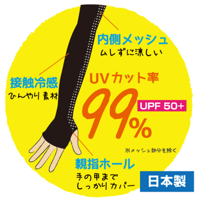 「女人的欲望」COOL&UV防晒手臂套,有效防护UV99%和UPF50+。采用凉爽材料制成,即使在夏天佩戴也很凉爽,内侧有网眼不会闷。另外穿过大拇指位置的洞,手背也能很好的得到防晒。日本生产,更加的安全放心,紧身设计使得行动更加方便,还有能使手臂看起来更纤细的效果哦。