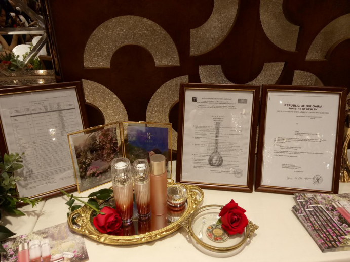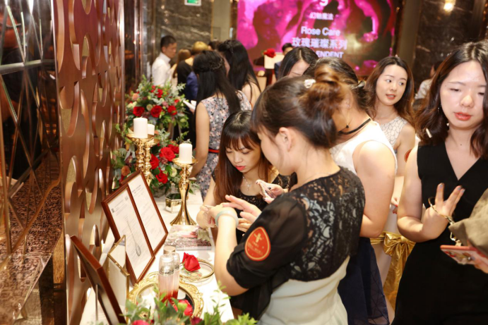 众所周知,玫瑰具有美白、提亮、抗氧化、清除自由基等作用,恢复肌肤活力,是帮助女性提升荷尔蒙的不二之选。本次发布会上推出的玫瑰璀璨系列四件单品,即璀璨光润晶露、璀璨紧致精华、璀璨悦容乳液、璀璨驻颜眼霜。该系列产品均选材于纯正保加利亚玫瑰辅以更加严格的国际操作标准进行提取生产,并结合新科技肽技术,主打紧致柔嫩、抗皱抚纹、抵御衰老之功效。不含香精,不含色素,不含防腐剂。独特的阿基肽与基原肽,改善因岁月形成的动态皱纹(如抬头纹、鱼尾纹、川字纹等),以及由表皮干燥缺水而形成的干纹、细纹等,使面部肌肤丰润光泽,弹性十足。