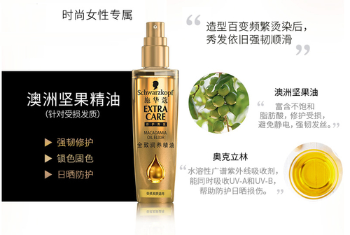 施华蔻金致润养护发精油或许就是最适合我们的。细腻的感触像是母亲的呵护般,保护着你的一丝一毫秀发。