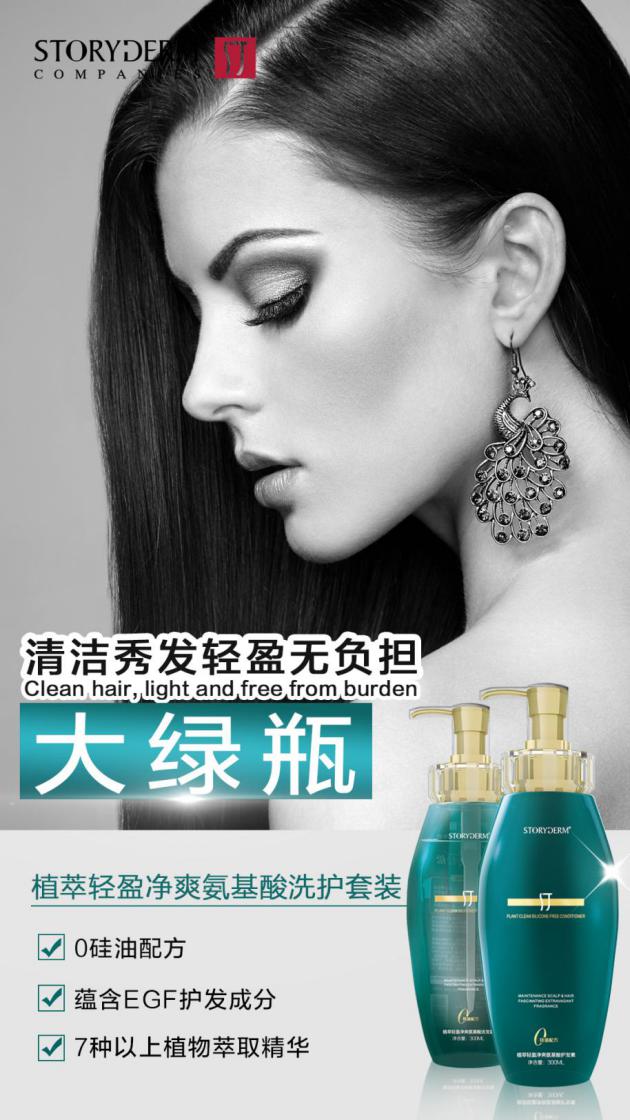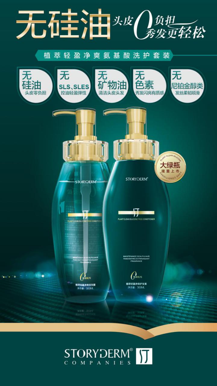 汀大绿瓶(植萃轻盈净爽洗发护发套装)是storyderm汀品牌旗下的洗护系列产品。汀大绿瓶采用无硅油配方,更有效清洁头发和头皮,无沉积、零负担。