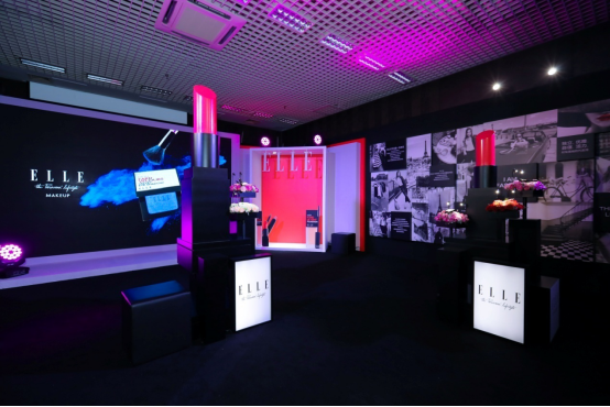 以色彩为导向,在远距离,中距离,近距离三个维度、以视觉/听觉/味觉/触觉,全方位立体的空间体验,整个场馆洋溢着来自法国时尚品牌ELLE带给我们的品牌格调。