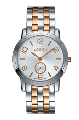腕表点评:无懈可击的制表工艺、经典大气的设计风格是瑞士罗马表(ROAMER)腕表给人的第一感觉。就像这款骏马系列腕表一样,简洁的表盘给人一眼即见的加大阿拉伯时标显示,犹如骏马在戈壁草原上肆意驰骋的畅快,豪放休闲风呼之欲出。而6时位小三针的巧妙设计,又凸显了戴表人对精品生活的独特见解。搭配时尚感十足的玫瑰间金表带,展现出成熟、优雅的魅力。