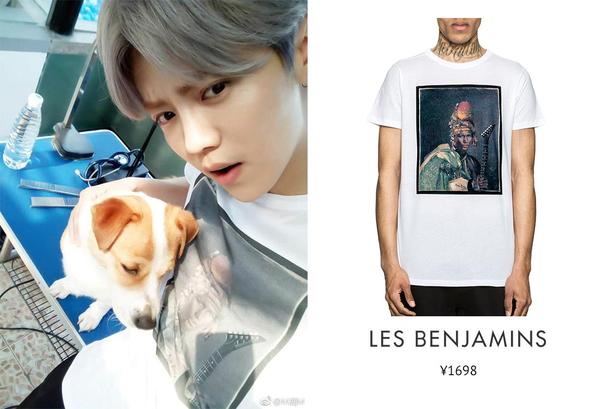 近日,中国当红男星鹿晗身穿LES BENJAMINS 2017ss款白色T恤和斑马纹夹克参加热播综艺节目《约吧大明星》。