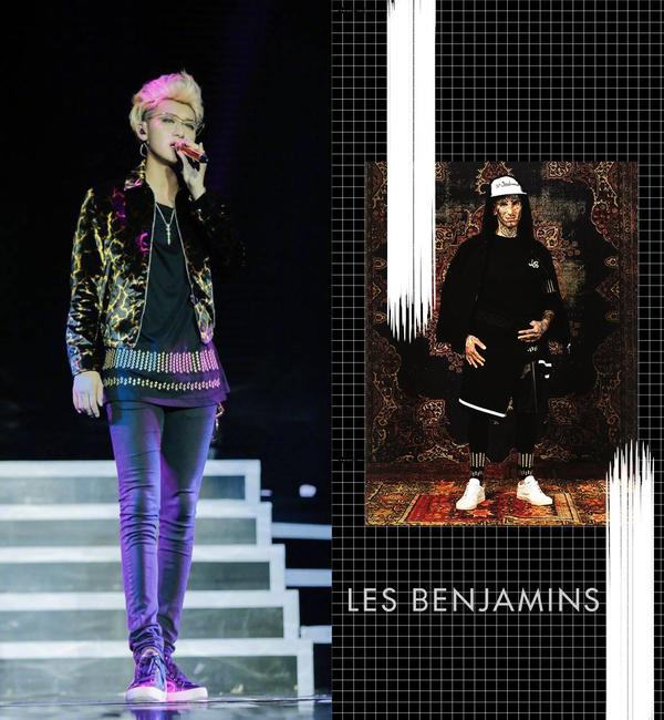 另一位实力唱将黄子韬亦身穿LES BENJAMINS黑金花纹刺绣T恤举办澳门站演唱会。经典黑与金色刺绣的组合毋庸置疑的更贴合了黄子韬的炫酷风格,舞台表现力十足。向来以酷感造型示人的黄子韬此次搭配LES BENJAMINS黑金刺绣 T恤更是将型格二字发挥到了极致,别致的花纹刺绣设计不但凸出了整体造型也为大家带来耳目一新的潮流风尚新体验。