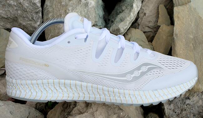 Freedom ISO与Freedom Runner均搭载Saucony EVERUN缓震中底科技,提供出色的反馈与缓震。Freedom ISO 选用简洁的白色呈现,银色Saucony Logo搭配金色细节点缀,为整双鞋款增添了些许端庄。
