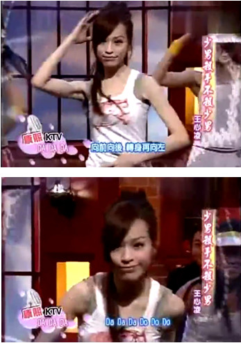没有配音,没有伴舞,魏如萱只能清唱广告神曲《坐在巷口的那对男女》,王心凌的表情亮了,撇嘴、翻白眼、一脸不屑,现场好尴尬。