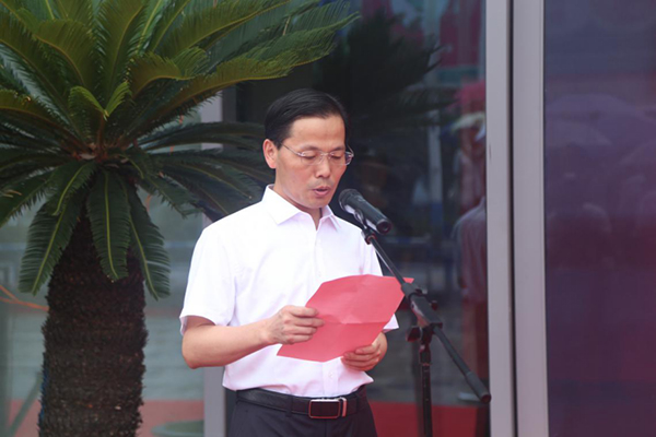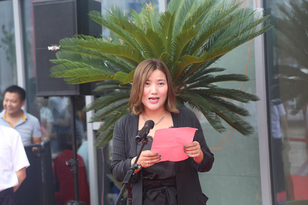 图为常熟服装城集团有限公司常务副总经理夏明宝主持开业
