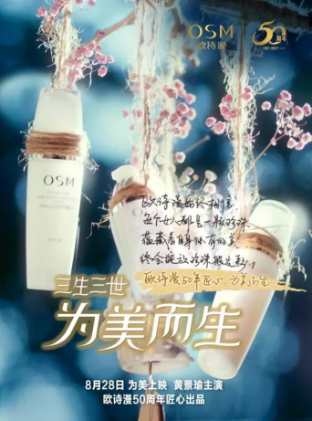 欧诗漫50周年营销启动,前后筹备了几个月的微电影《三生三世为美而生》唯美上映。该片由黄景瑜倾情主演,讲述了三代人寻找美,发现美,坚持美的故事。
