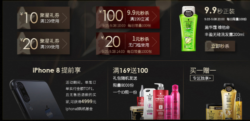 “此次大促活动将分为预热和正式启动两个阶段,这样做的目的是让更多的网友有充分的时间获知消息并做好准备,以免错过活动时间。在启动环节中,大家可以提前将领红包、秒杀等工作做足,并对欲采购的产品进行了解,这样在活动开始后就可以果断出手了!”天猫施华蔻官方旗舰店的工作人员说。据悉,9月5日—9月8日是该活动的预热阶段,活动的正式时间为9月9日—9月10日。