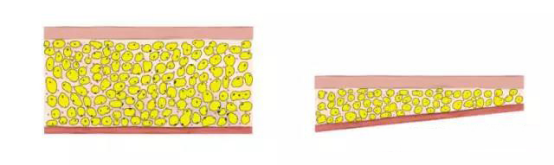 此种吸脂方式最为常用,也是初学者必须要熟练掌握的吸脂的最基本技能。运用在面部吸脂时,可以削薄面部的脂肪层,并同时也保存了部分浅表的脂肪,保证皮肤有弹性和皮肤紧实,预防肌肤粘连。此法用可于年轻人面部皮肤比较紧实的脂肪雕塑者和所有面部肥胖者。注意:吸脂不均匀或保留皮下浅表的脂肪过少会出现表皮凹凸不平整,以及粘连的问题;如果面部吸脂不足术后形态无立体感或变化不大。
